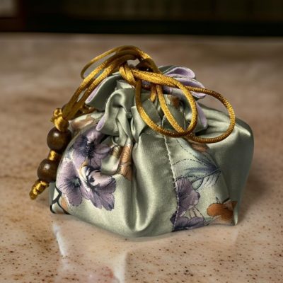 The Travel Jewelry Pouch is a beautiful way to carry your valuable pieces of jewelry. Choose the satin Bohemian or Sage Lavender or perhaps the richly Deep Teal which each hold nine separate pockets, keeping items organized and untangled. It slips into the luggage, purse or tote and ties securely. Travel with the assurance knowing your jewelry will remain secure and in tact.